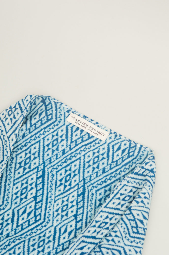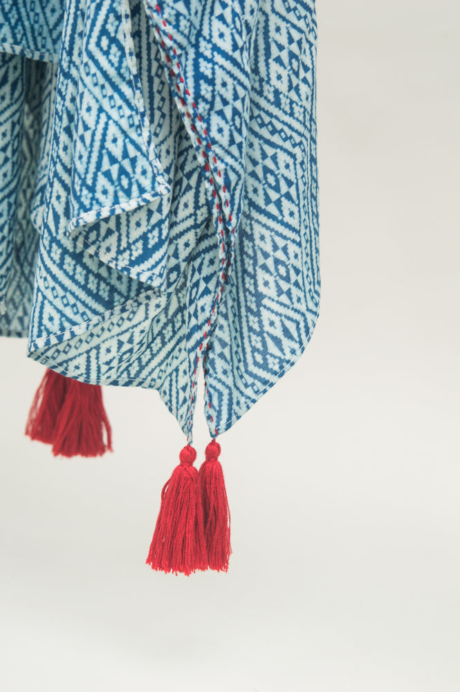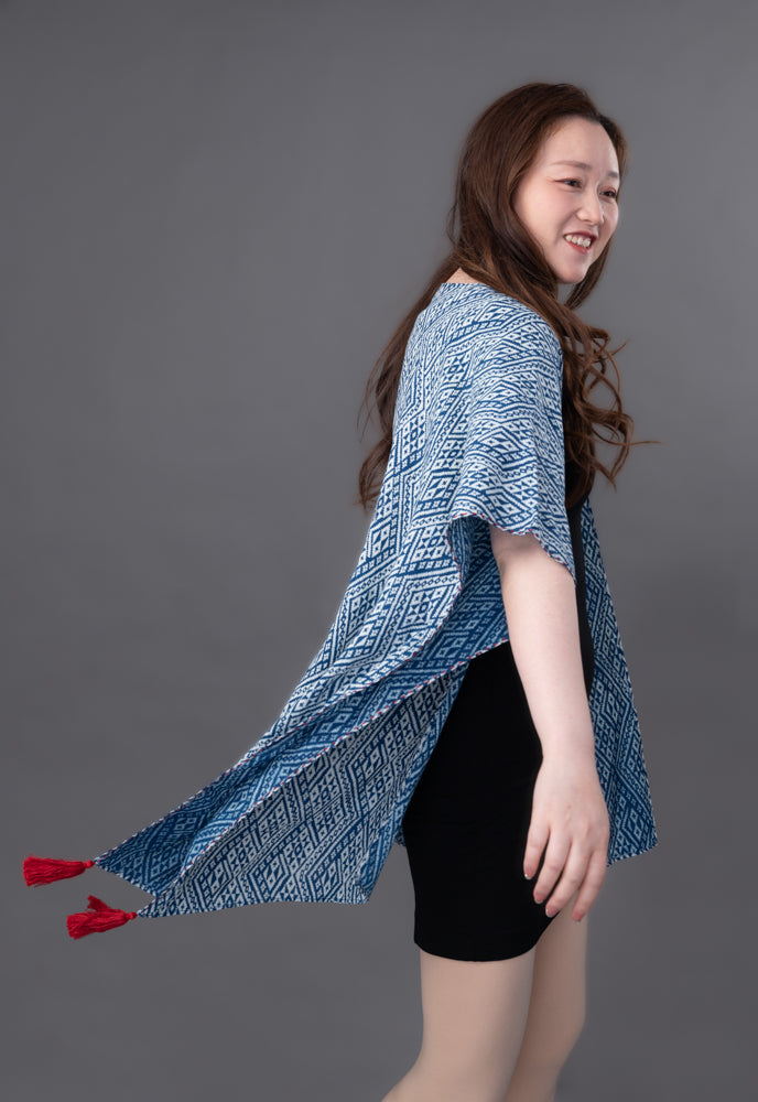 Lisu, Burmese, and Thai women came together to create this beautiful kimono-inspired garment. The stunning hand-stitched red thread detailing on our Mali Sky are a celebration of the hill tribe traditions, passed down by women for generations. The Mali is perfect over a swimsuit, with a pair of jeans and a tee, or even a simple dress for a night out. You’ll love the versatility of this lightweight piece.