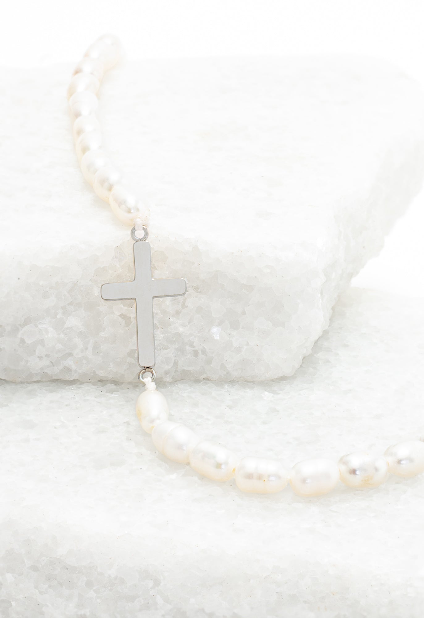 Shimmering freshwater pearls shape our new modern classic - the Faithful Pearl Necklace. Each one-of-a-kind pearl speaks of the unique beauty we see in each woman and girl who is building a sustainable life of freedom. Wear this timeless, value-celebrating strand of pearls with a hypoallergenic stainless steel horizontal cross pendant as you share the impact of your purchase. Every survivor at Starfish Project begins building her new life of freedom on the jewelry production line. A fellow survivor mentors her as she learns to hand string pearls, and her confidence grows as her first necklace is created just for you!