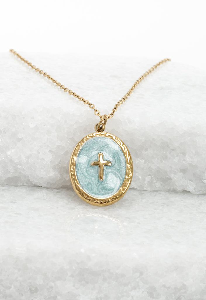 Materials: 14k gold plated stainless steel enamel necklace