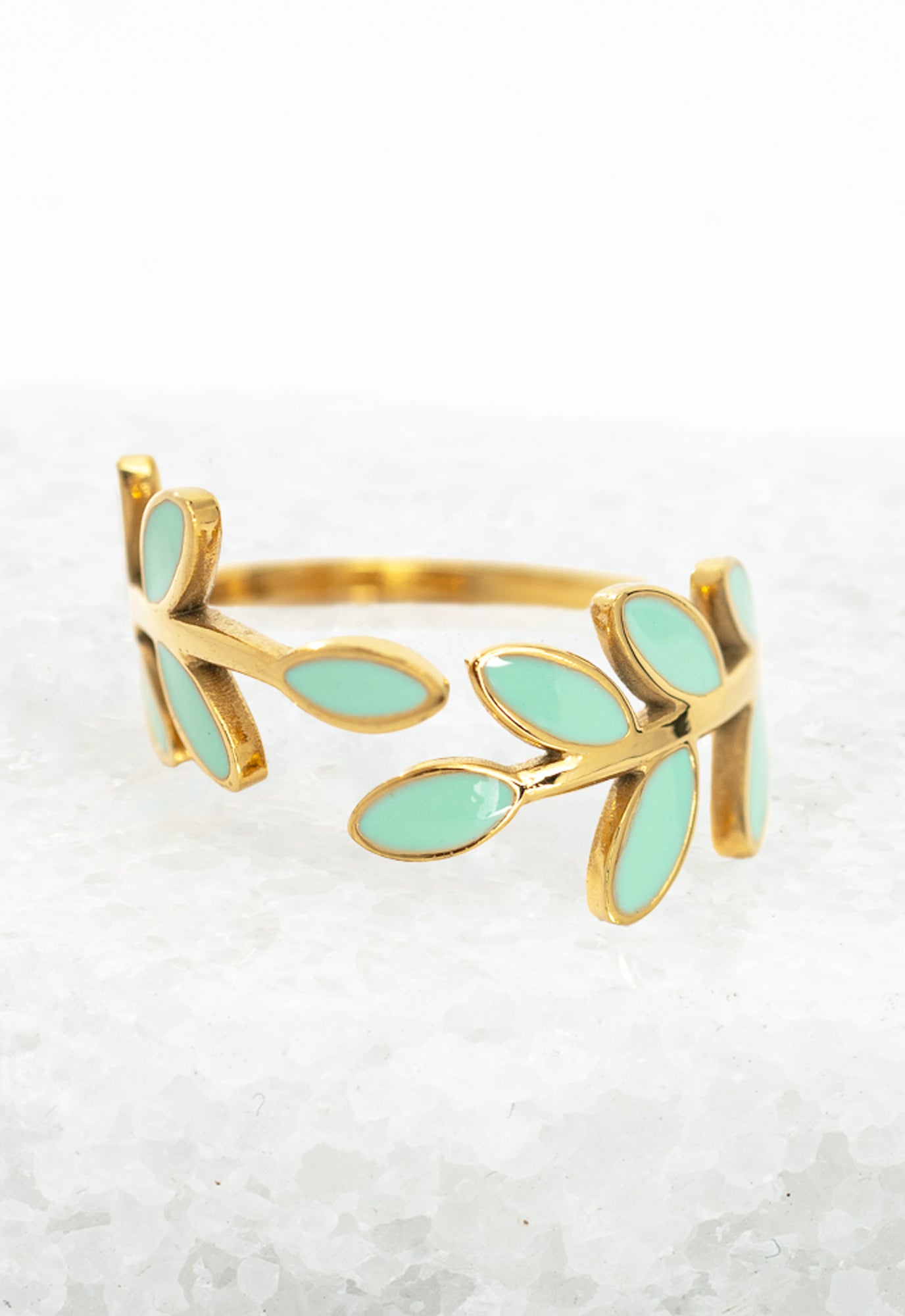 Materials: 14k gold plated stainless steel leaf ring