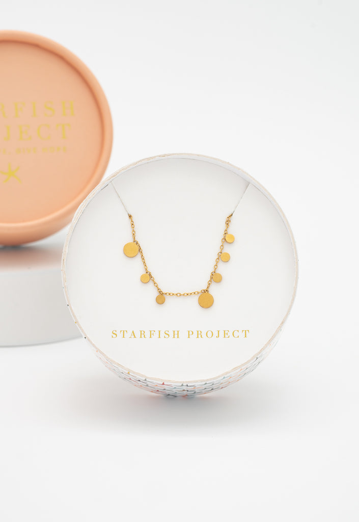 Here at Starfish Project, we are all about celebrating people, growth, multicultural holidays – you name it and we’ll bring the cake and confetti! Our stunning Confetti Necklace is here for fun and is effortlessly glam! Layered or worn alone, our Confetti Gold Necklace will make you sparkle and shine all day long.