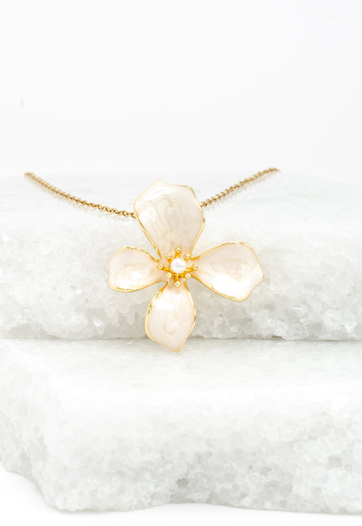 Our Hope in Bloom Necklace makes an unforgettable statement you’ll want to pair with every look! Shimmering tan enamel on 14K plated gold shapes the 3D flower pendant, creating a beautiful stage for the freshwater pearl within. Style yours with a gorgeous formal look or your weekend vibes tee and shorts. As you wear and gift our Hope in Bloom Necklace, celebrate the power of hope you share with the survivors beginning a new life of freedom at Starfish Project. May this hope bloom in every season!