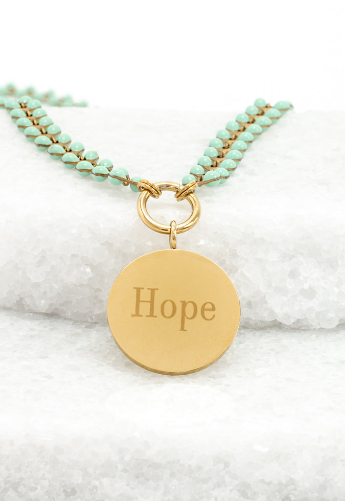 Our Hope Pendant on the fan-favourite Seeds of Hope Chain Necklace is an everyday necklace with a big impact. Our Seeds of Hope Necklace celebrates the seeds of hope, love, and peace you plant in your community. You’ll love to wear and gift this gorgeous adjustable, 14K gold plated vine of delicate seafoam seeds with “Hope” as the centerpiece. Your purchase means exploited women and girls can begin establishing independence at Starfish Project. Thank you!