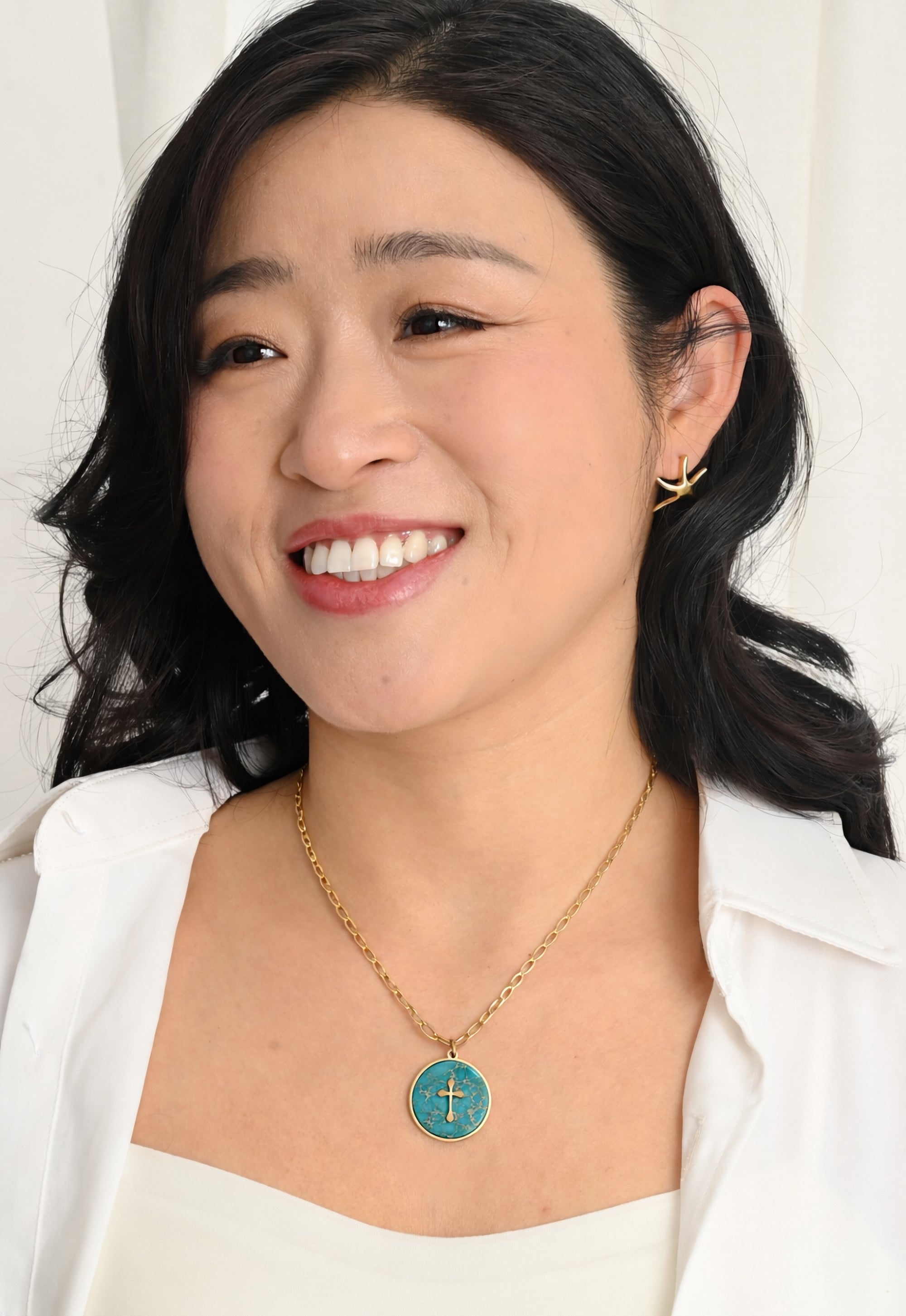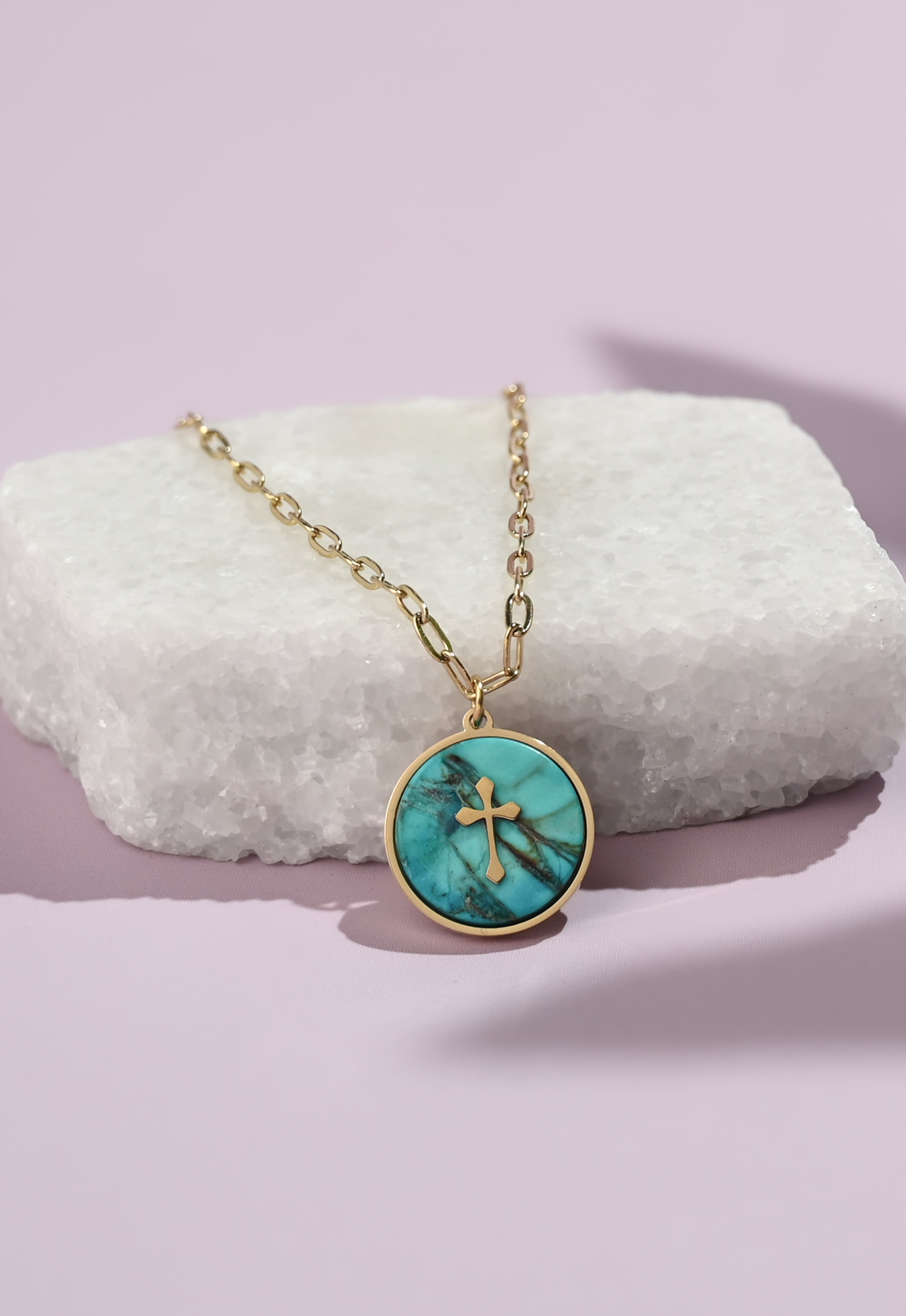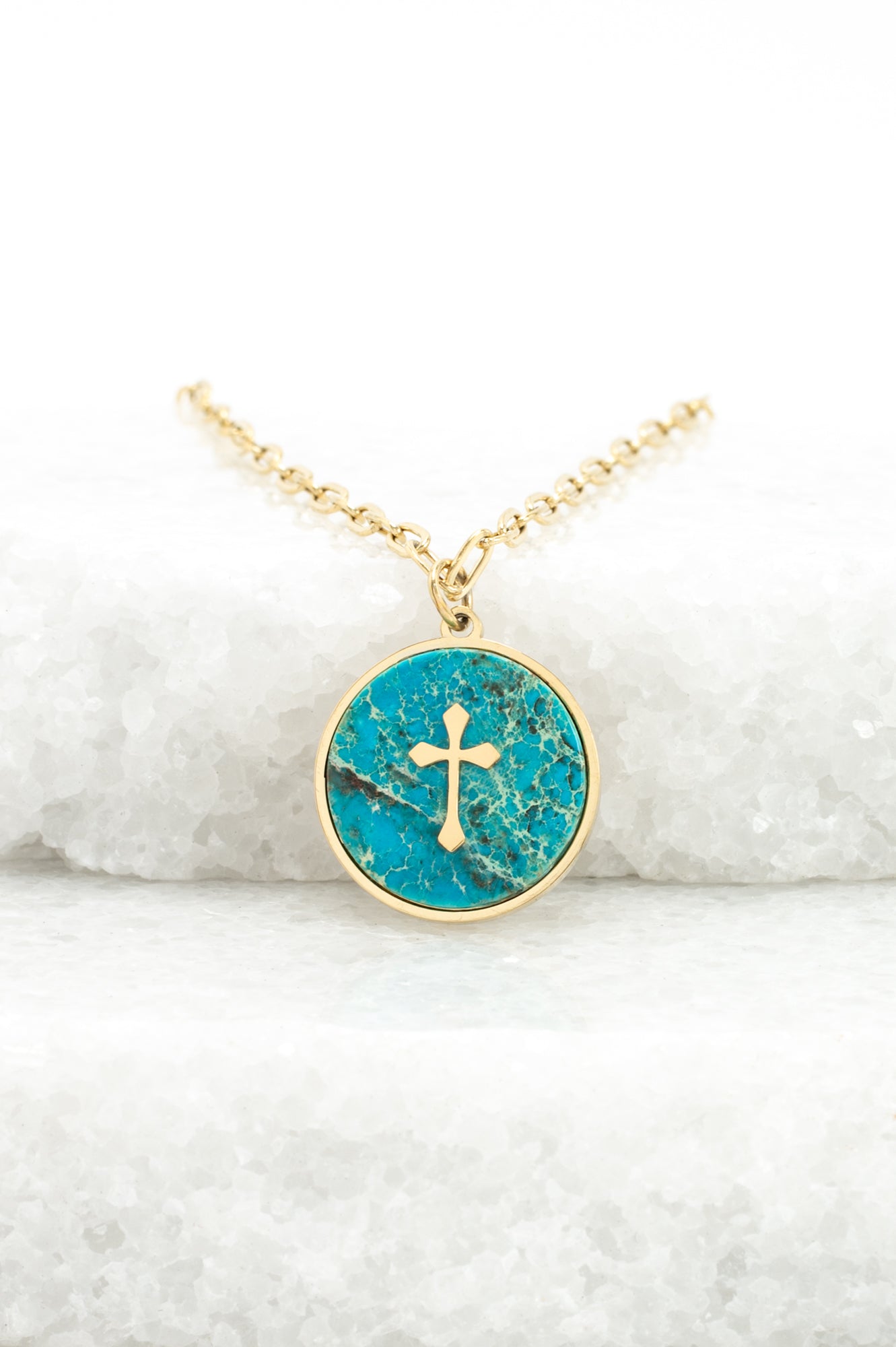 The Anchor of Hope Necklace features a vibrant turquoise-colored stone framed in 14k plated gold, with a cross at its center. Suspended on an adjustable 14k gold-plated chain, this meaningful piece is designed for everyday wear and effortless layering. A beautiful gift of faith and encouragement, this necklace is a reminder that hope endures through every season. Each purchase helps provide safe housing, dignified employment, and new beginnings for women and girls escaping exploitation. Thank you for giving—and wearing—hope.