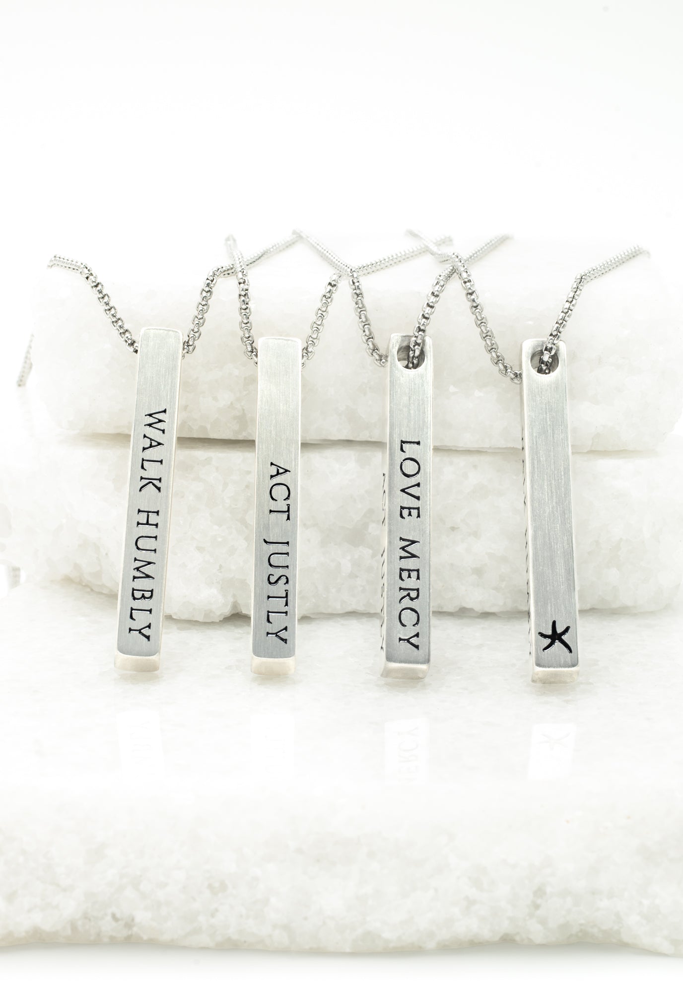 Act Justly, Love Mercy, Walk Humbly Bar Necklace