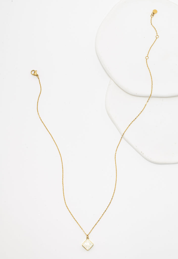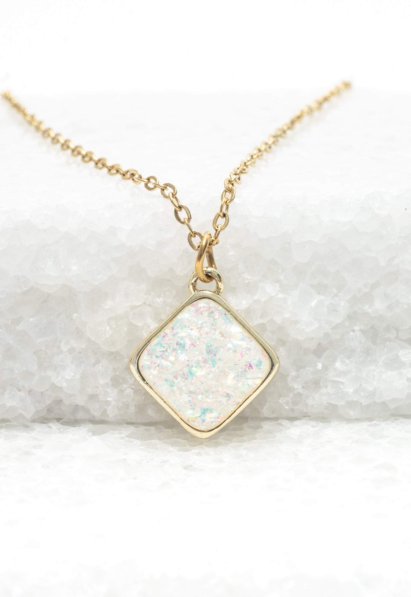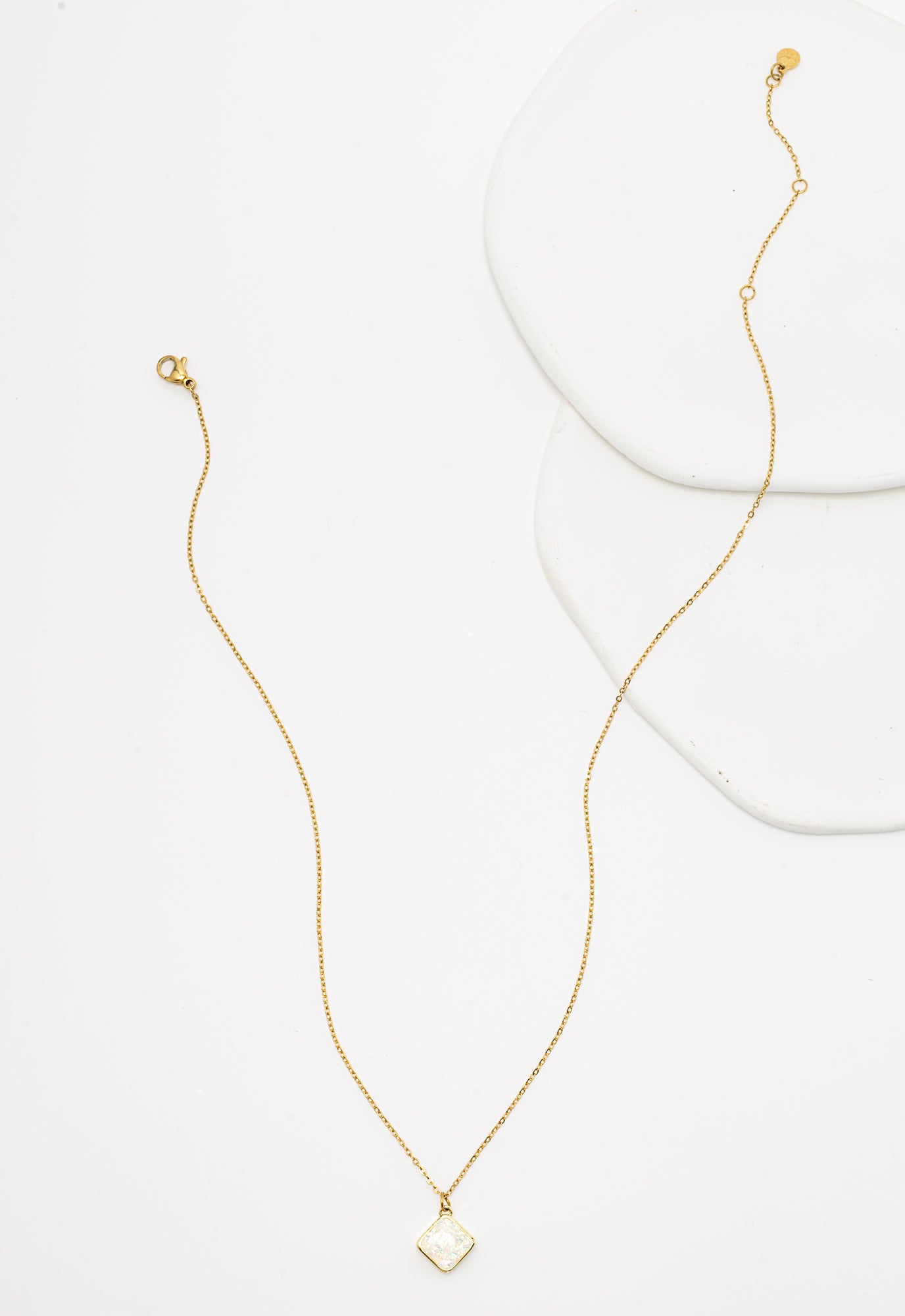Materials: 14K gold plated stainless steel necklace with an opal pendant