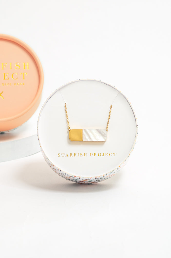 Our Courage Light and Gold Necklace celebrates the bravery of each woman at Starfish Project. The glowing mother-of-pearl paired with the 14k plated gold speaks of the refined beauty we see in the hearts of women finding restoration through Starfish Project. Tell her story as you wear this delicate, adjustable statement piece, perfect for day or night.