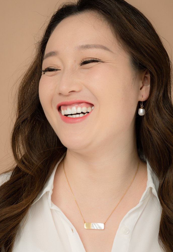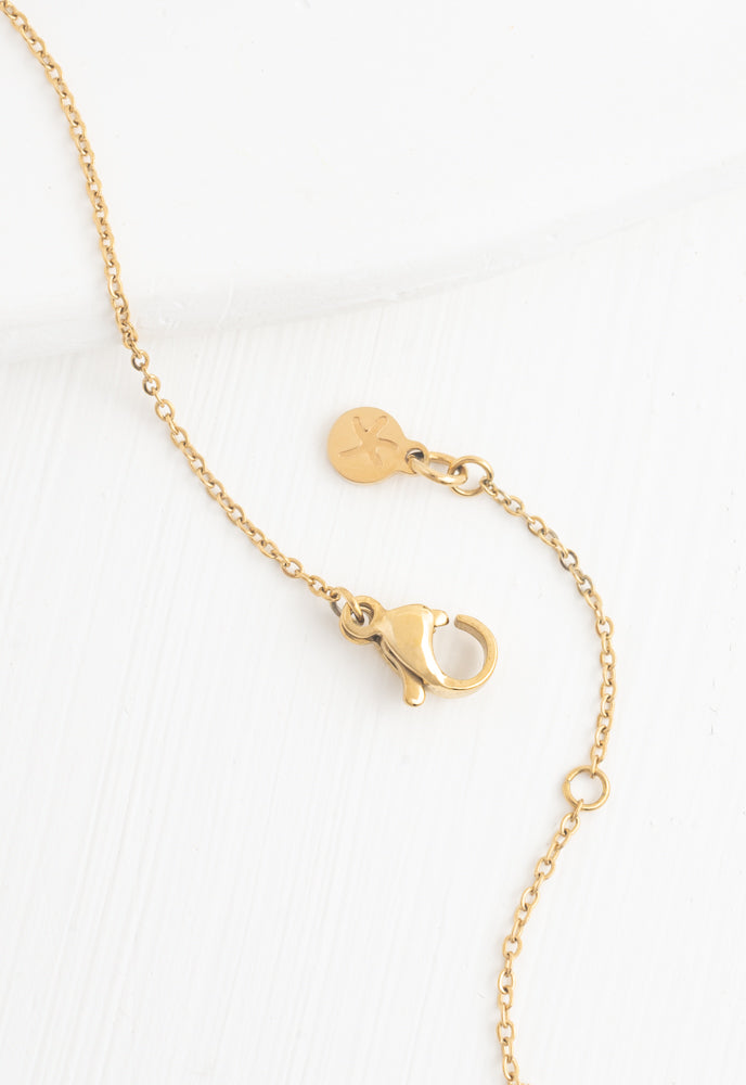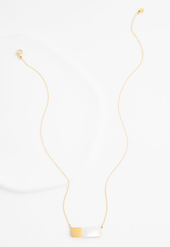 Materials: 14k gold plated stainless steel and mother-of-pearl necklace