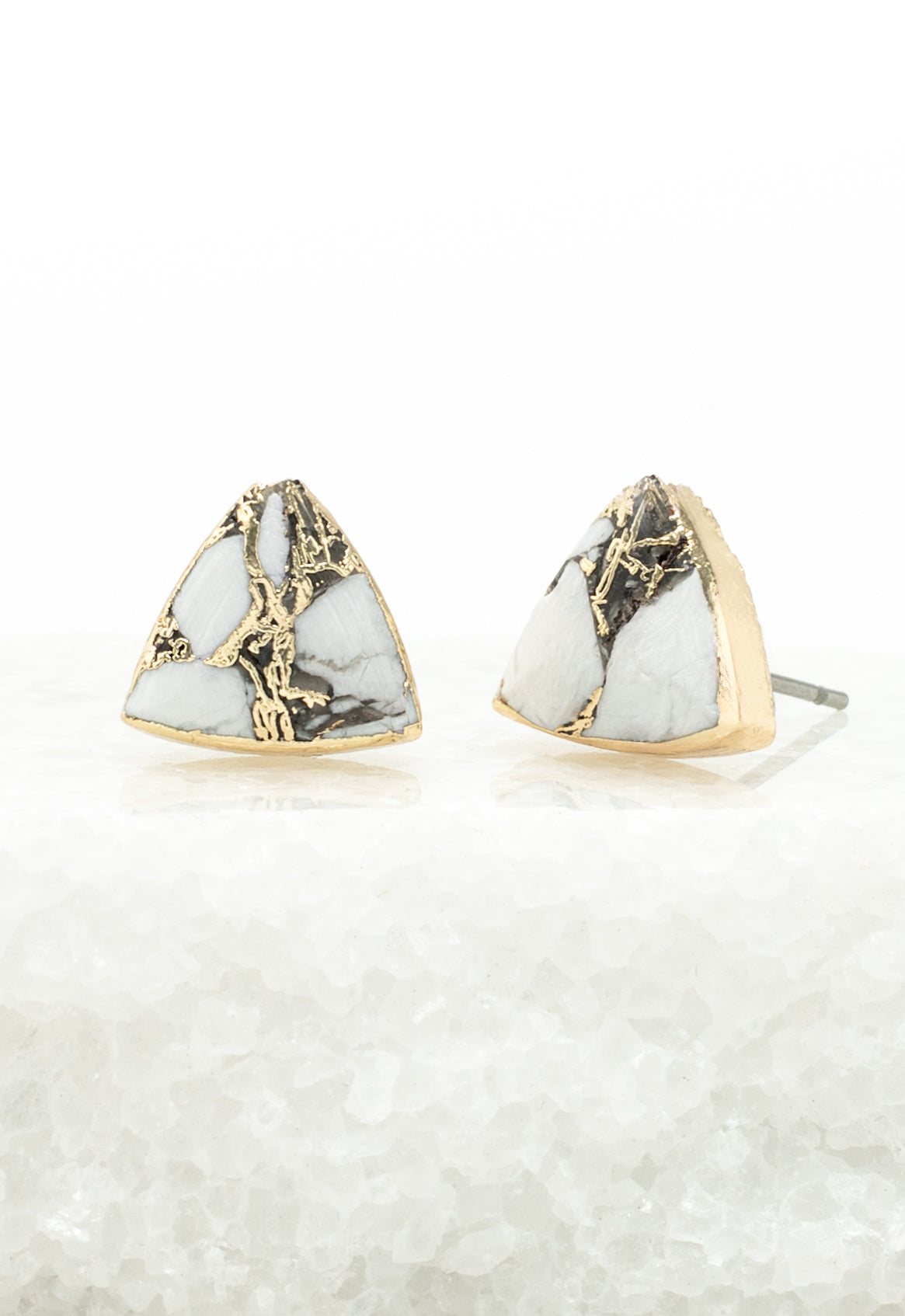 The Haven Studs are a reminder—and a catalyst—of safety, rest, and hope. Natural white turquoise is woven with shimmering 14k gold for a soft, radiant finish in a gently rounded triangle shape. Subtle yet striking, these earrings bring calm, warmth, and beauty to everyday moments.