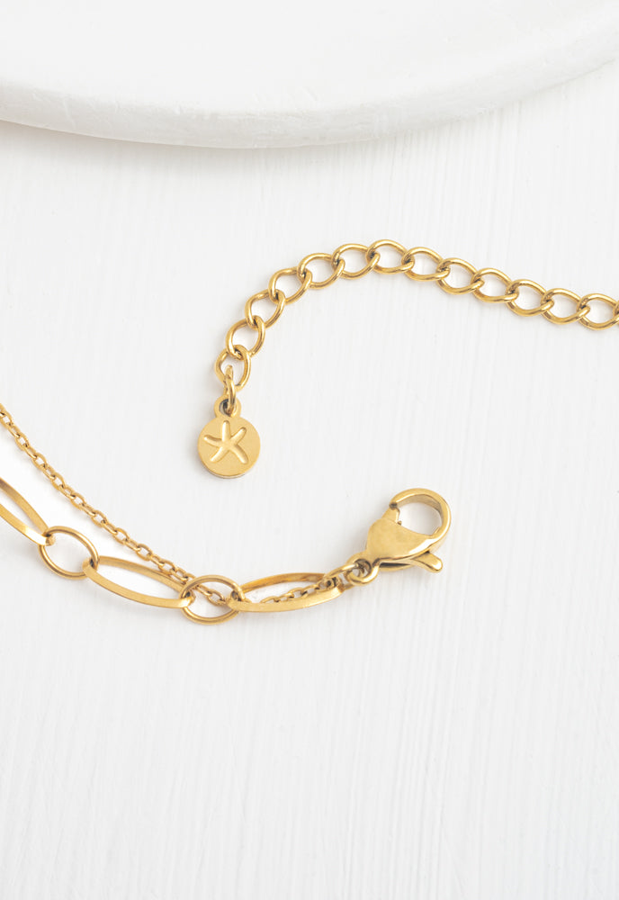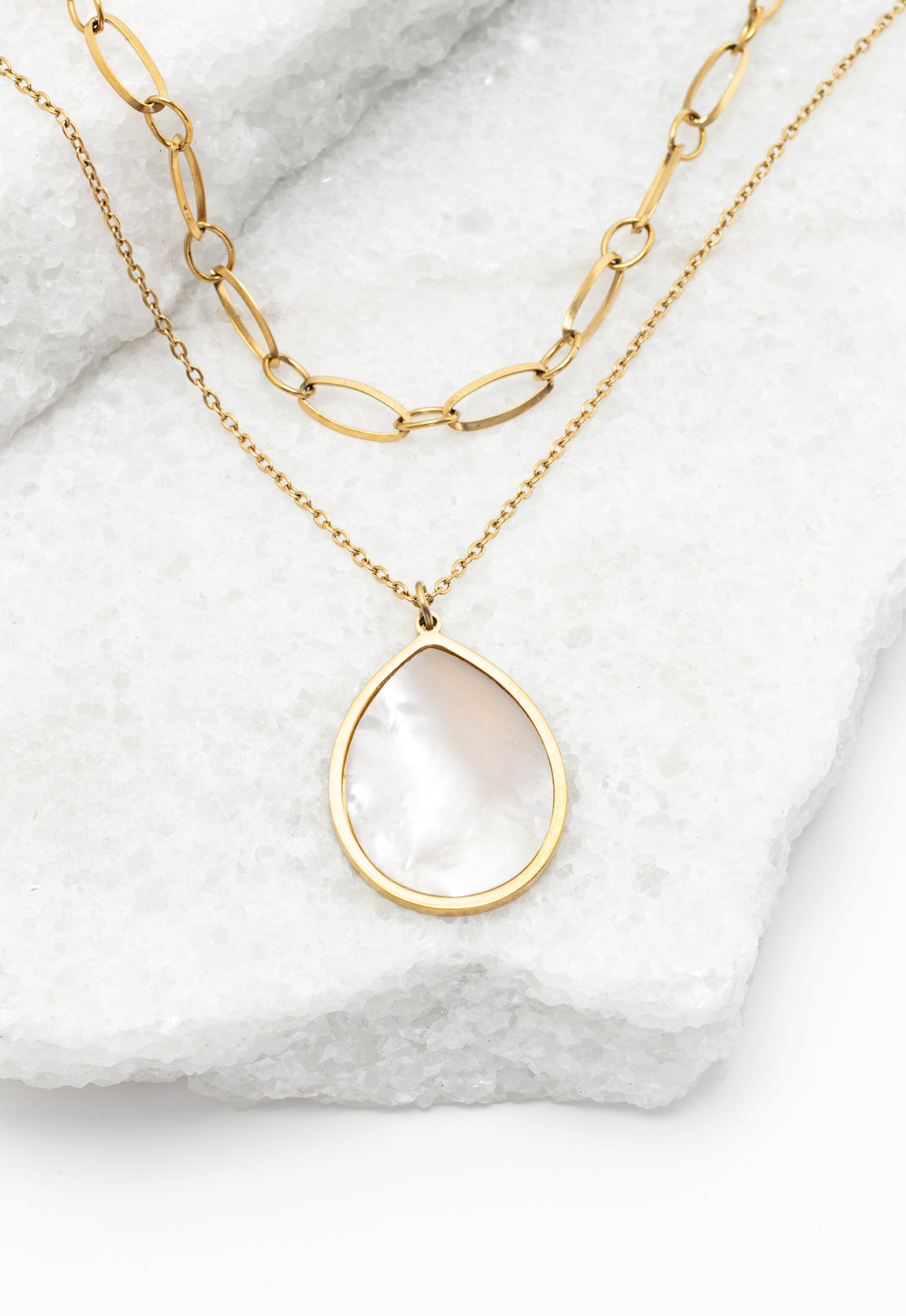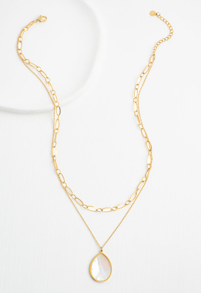 Materials: 14k gold plated stainless steel and mother-of-pearl necklace